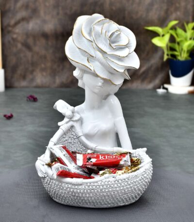 Decorative white Lady with Basket Statue for Home Decor Showpiece Figurine