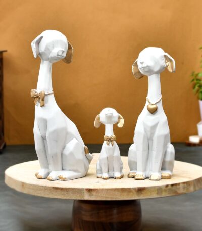 WHITE Golden Set of 3 Cute Dog Statues Animal Figurines Decorative Showpieces for Home Decor in Living Room, Office, Pet Lovers’ Spaces – Gift for Dog Enthusiasts on Birthday, Housewarming