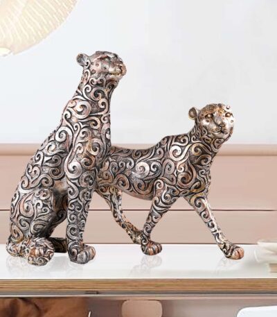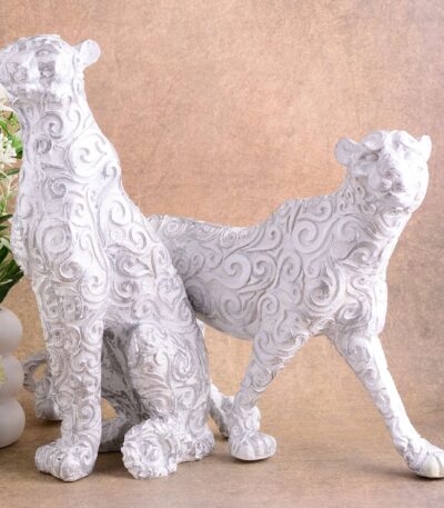 White Panther Animal Showpiece Antique Sculpture for Home Decor Showpiece Figurine (Set Of 2)