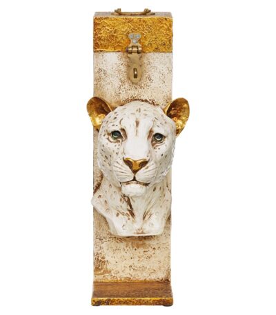 White Panther Standing Position Animal Showpiece Antique Sculpture for Home Decor Showpiece Figurine