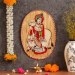 Oval Shaped Design Bamboo Hand Crafted Wall Hangings Of Krishna Ji With Radha Ji For Home Decor | Bamboo Art For Wall Decor